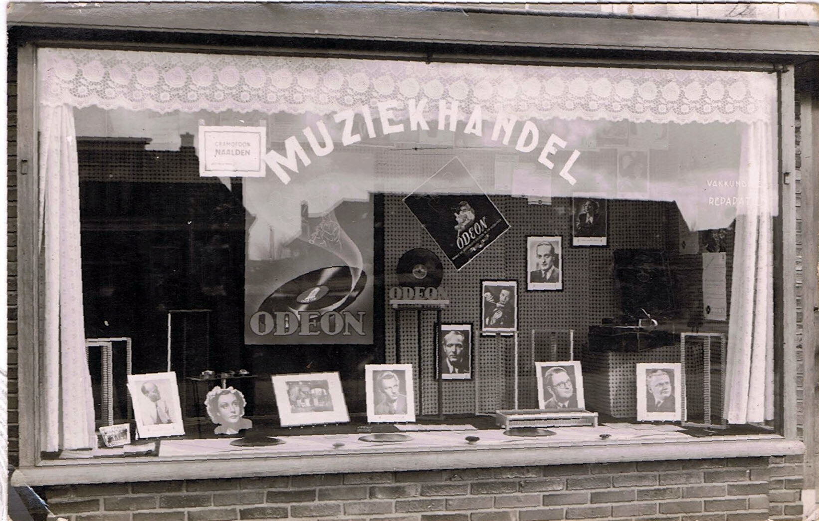Toen Evelyn op 22 mei 1937 de winkel aan de Hoofdstraat opende, bestond het assortiment voornamelijk uit muziekinstrumenten. Verder werden er 78-toerenplaten, bladmuziek en grammofoonnnaalden verkocht. Toen er in de oorlog een periode was van enorme schaarste, moest de consument eerst een plaat inleveren voor er weer een nieuwe gekocht kon worden.